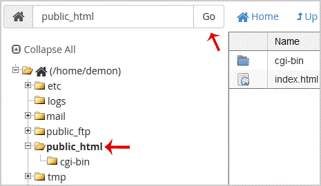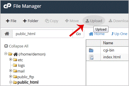 . Navigate to the directory where you want to upload your files to. For example, . your file to the public html folder, you need to go to /public_html first. On the left side you can see a list of directories. Double. "public_html" folder.