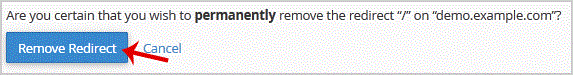 1. Log into your cpanel account.2. In the "Domains" section, click on "Redirects" Icon. 3. Scroll down to the end of page and under "Current Redirects" locate the domain and. "remove" icon. . For confirmation. "Remove Redirect" babies once more.