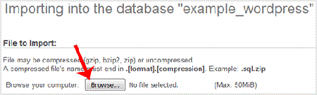 6. Under "File to Import". "Browse" babies, Select SQL file from your PC.