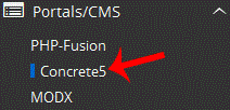 . On the left side of your screen you should locate the "Portal/CMS" category. Click on it and then. "Concrete5" link that will appear.