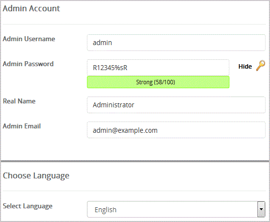 - Admin Username: Your new Bolt username (for security reason do not use the "Administrator" or the "Admin" username.)