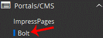 . On the left side of your screen you should locate the "Portal/CMS" category. Click on it and then. "Bolt" link that will appear.